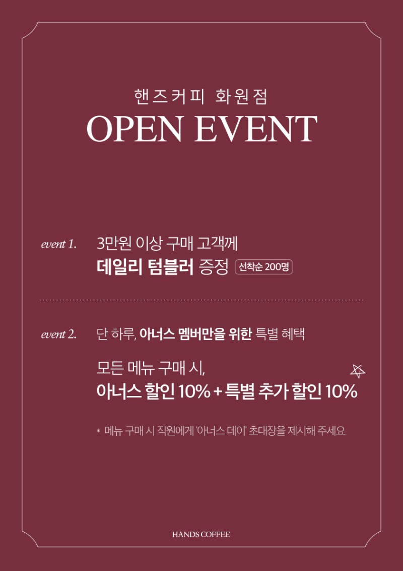 * 주문 시 아너스 회원 바코드를 직원에게 보여주세요.