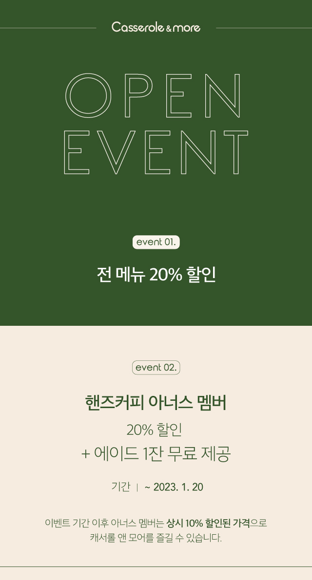 전 메뉴 20% 할인 (~2023.1.20)